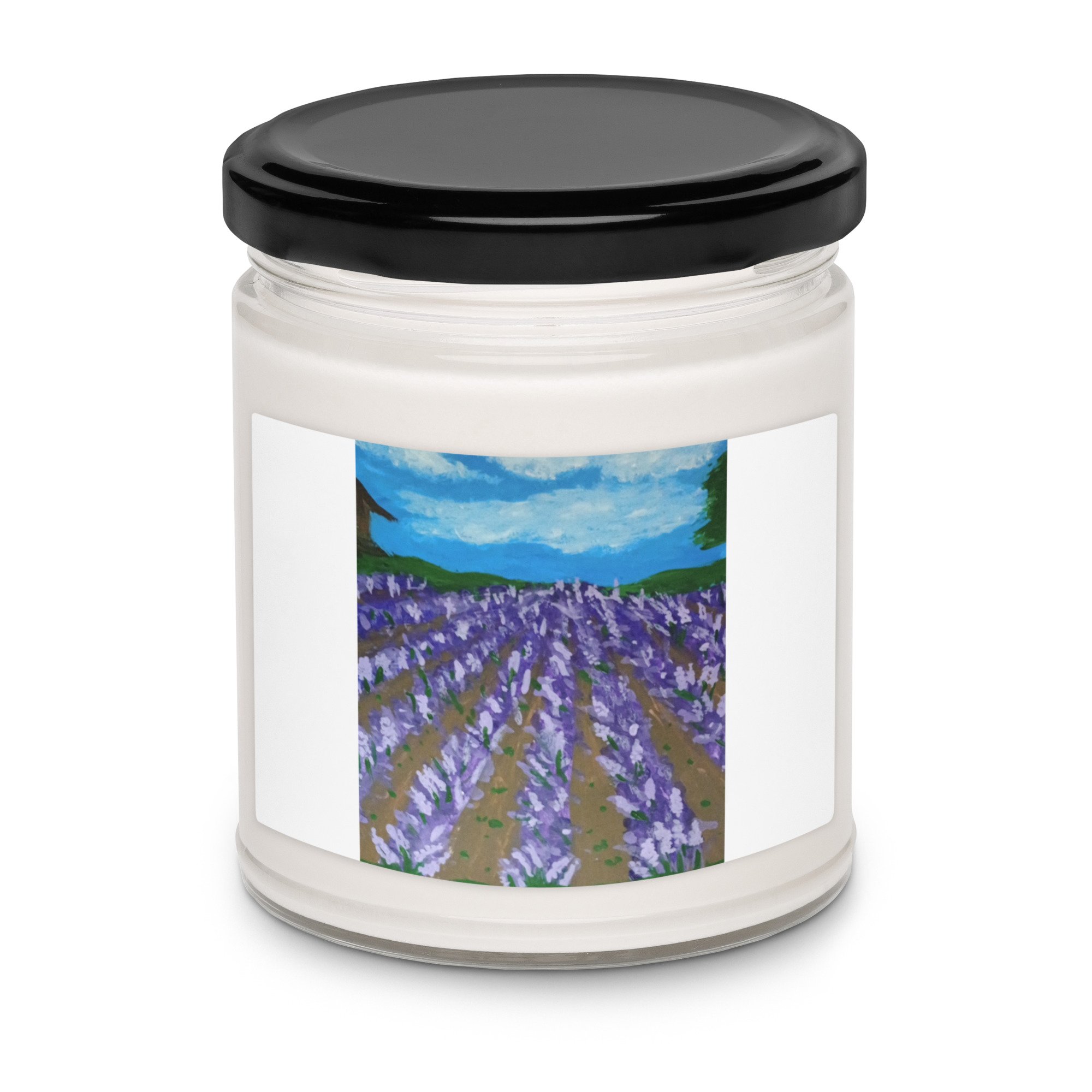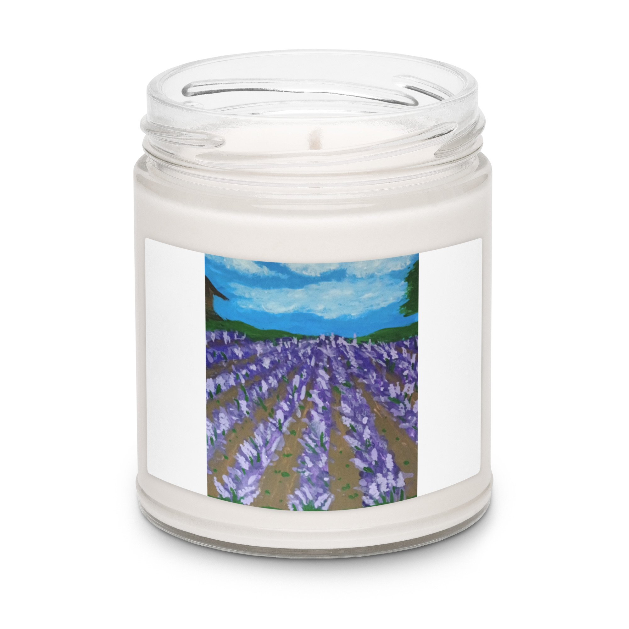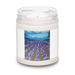 Soft, clean, and calming. This soy candle fills the room with Lavender Sage fragrance. It comes in a smooth glass jar decorated with a pretty lavender field print that fits any space—perfect for gifting or winding down.