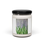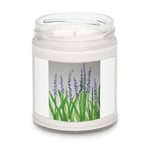 Soft, clean, and calming. This lavender Sage soy candle fills the room with its unforgettable fragrance. It comes in a smooth glass jar with a pretty lavender print that fits any space—perfect for gifting or winding down.