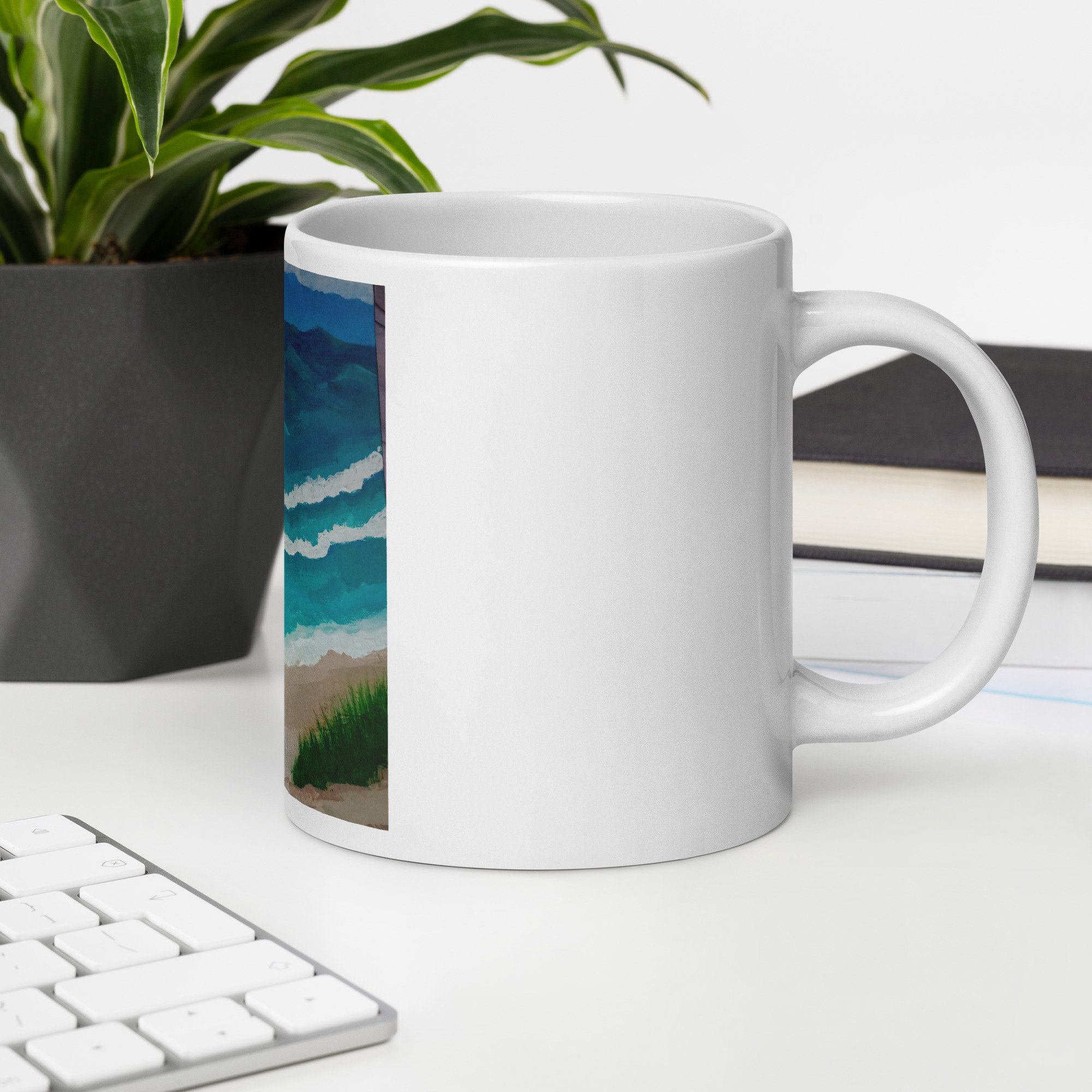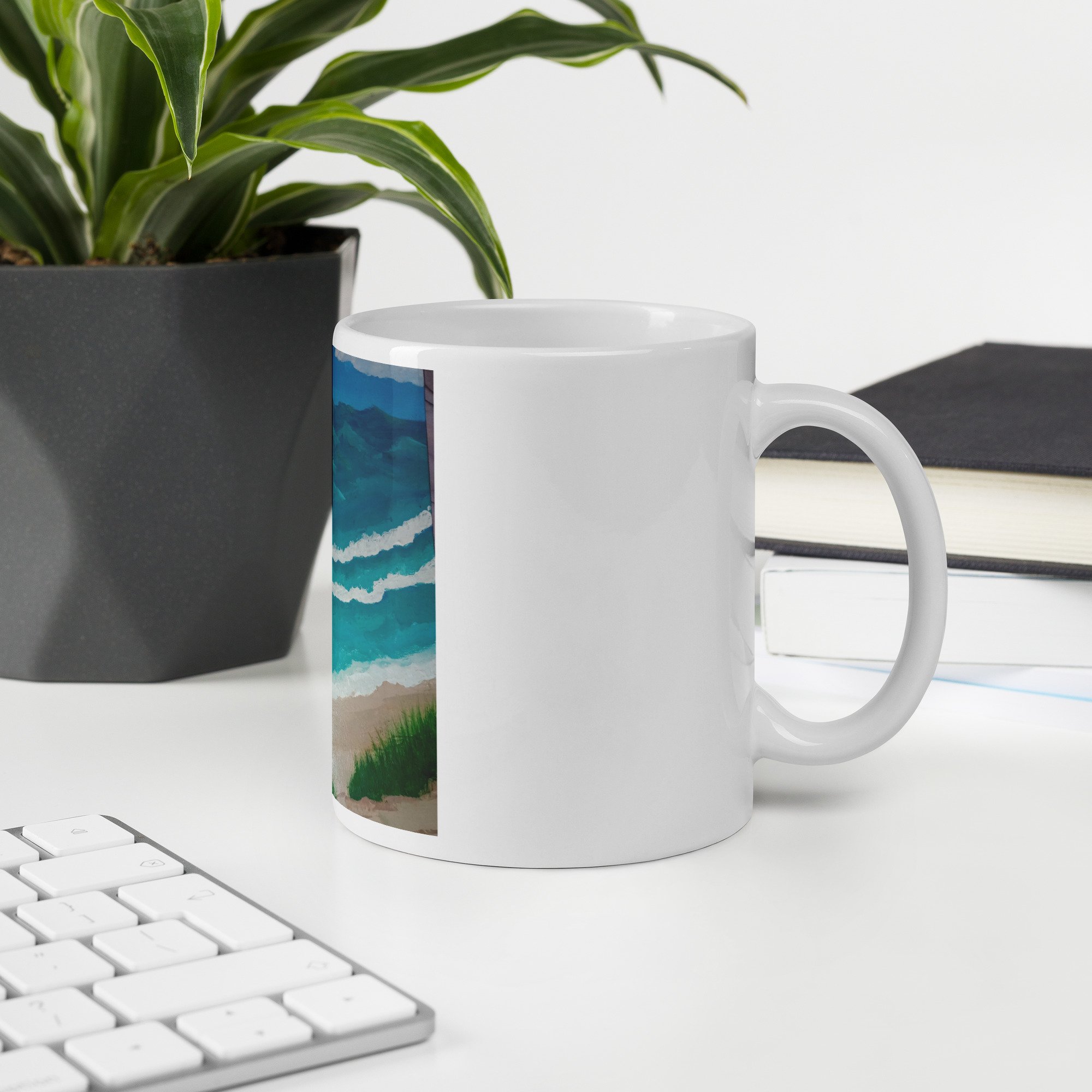 White glossy mug with beachy print